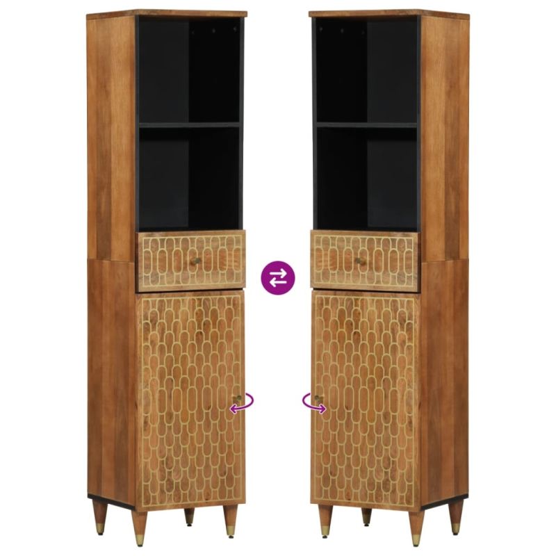 Този практичен комплект мебели за баня, разполагащ с просторно пространство за съхранение, е отлично допълнение към вашата баня, като ѝ придава подреден и впечатляващ вид! Масивна мангова дървесина: Масивната дървесина от манго е здрава тропическа дървесина, от която се произвеждат здрави мебели. Красивите ѝ дървесни шарки правят всяка мебел малко по-различна от следващите. Достатъчно място за съхранение: Дървените мебели за баня предоставят различни възможности за съхранение и просторно пространство, за да съхранявате предмети във вашата баня. Спестяващ място дизайн: Козметичното огледало може лесно да се монтира на стена, за да се спести място на пода. Плотът на шкафа за баня е идеален за поставяне на мивката, за да можете да оползотворите напълно свободното пространство под мивката. Ясен образ: Стъкленото лице на огледалото осигурява фино и ненарушено отражение, така че е подходящо за гримиране, бръснене или проверка на костюма преди излизане. Внимание:За да предотвратите преобръщане, този продукт трябва да се използва с предоставеното устройство за закрепване на стена. Добре е да се знае:Всеки артикул е уникален с вариации в цветове и зърна. Доставката е на случаен принцип, което гарантира ексклузивността и индивидуалността на вашия продукт. Винтовете и дюбелите за вътрешната стена не са включени. Съветваме ви да намерите и използвате винтове и дюбели, подходящи специално за вашите стени. Ако не сте сигурни, можете да се консултирате с професионалист. Моля, прочетете и следвайте всяка стъпка от инструкциите.