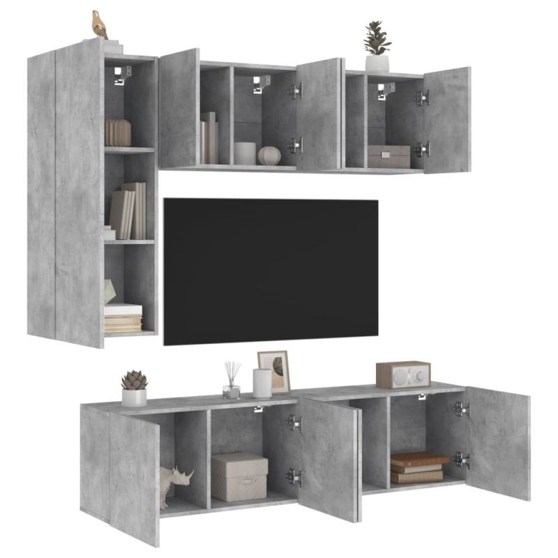 ТВ стенни модули, 5 части, бетонно сиви, инженерно дърво