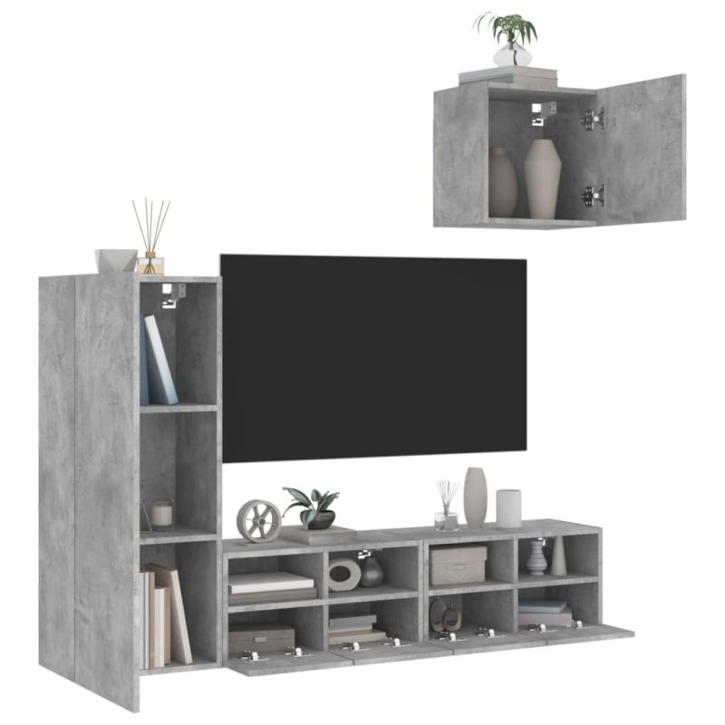 Начало Дом и градина Мебели Секции и поставки за телевизори ТВ стенни модули, 4 части, бетонно сиви, инженерно дърво
