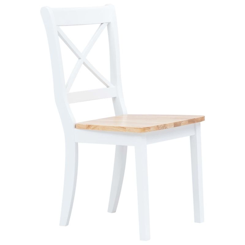 Трапезни столове, 2 бр, бял и естествен, каучуково дърво масив