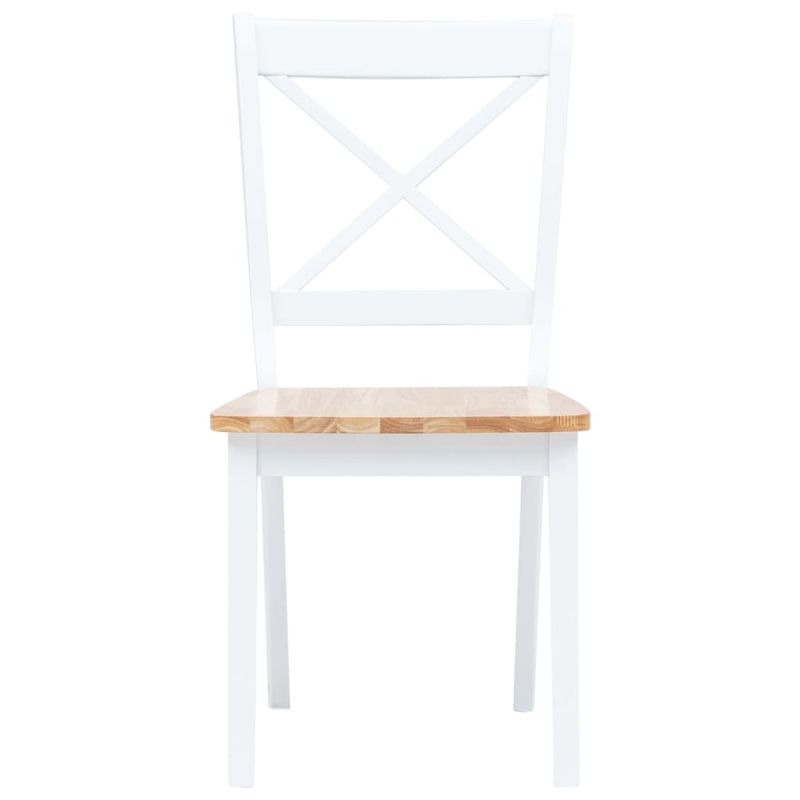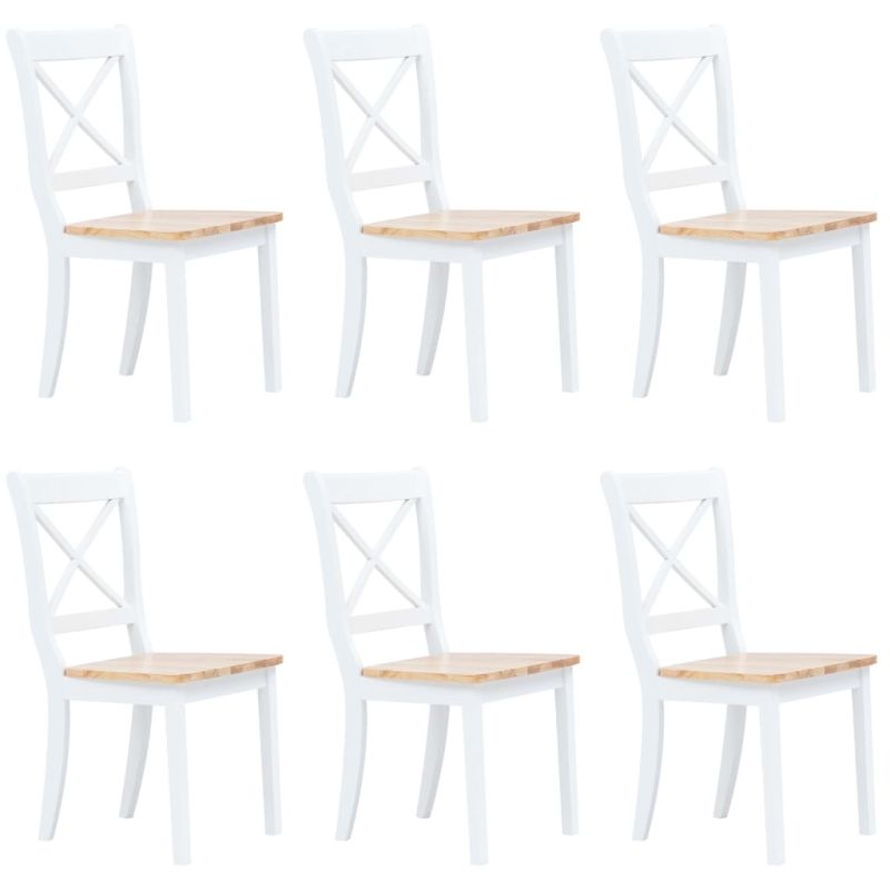 Трапезни столове, 6 бр, бял и естествен, каучуково дърво масив