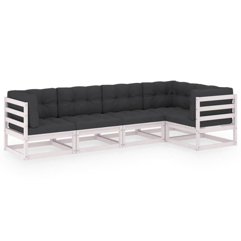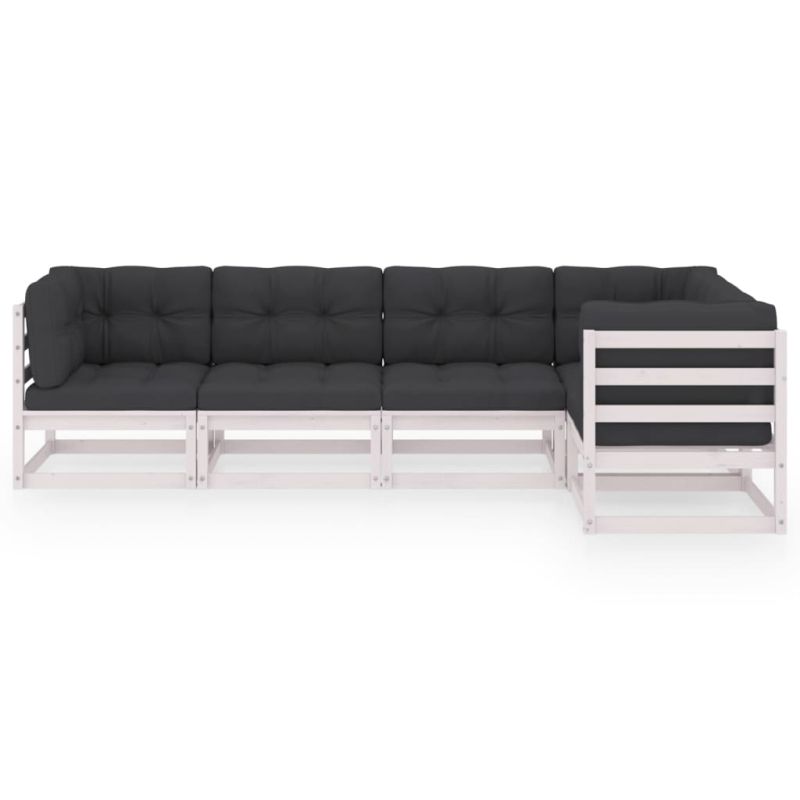 Градински лаундж комплект, 5 части, с възглавници, бор масив