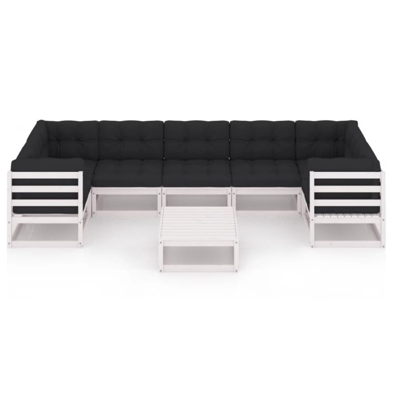 Градински лаундж комплект 8 части с възглавници бял бор масив