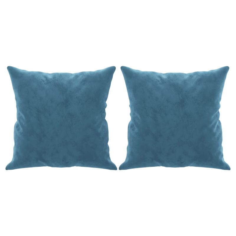 2-местен диван с декоративни възглавници син 120 см кадифе