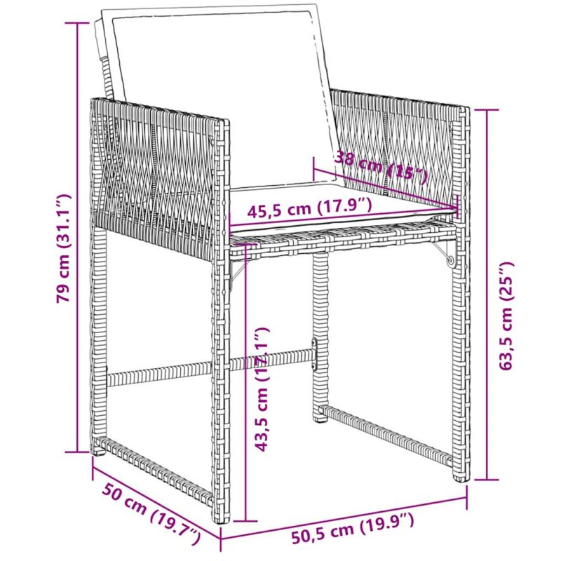 Този градински трапезен комплект е чудесен избор за вечеря на открито или просто за почивка в градината, задния двор или във вътрешния двор. Издръжлив материал: PE ратан, известен също като полиратан, е здрав синтетичен материал с малко необходима поддръжка, който прилича на естествен ратан. Той е лек, лесен за почистване и често се използва за външни мебели поради своята издръжливост и устойчивост на атмосферни влияния.Компактно съхранение: Тези столове имат падаща облегалка, която може да се сгъва, което улеснява съхранението им под масата. Когато са сгънати, те се побират под масата, оформяйки спестяваща място форма на куб.Удобна седалка: Тази мебел за открито, снабдена с плътно подплатени възглавници, предлага удобство при сядане.Калъф, който може да се сваля и може да се пере: Тези възглавници за седалки имат подвижни калъфи за лесно пране и поддръжка. Калъфките за възглавници имат калъф отзад за лесно закрепване към облегалките.Стабилен и лесен за почистване плот: Тази градинска маса има плот от акациево дърво, който е здрав, издръжлив и лесен за почистване с влажна кърпа. Добре е да се знае:За да сте сигурни, че вашите външни мебели ще останат красиви, ви препоръчваме да ги защитите с водоустойчиво покривало.