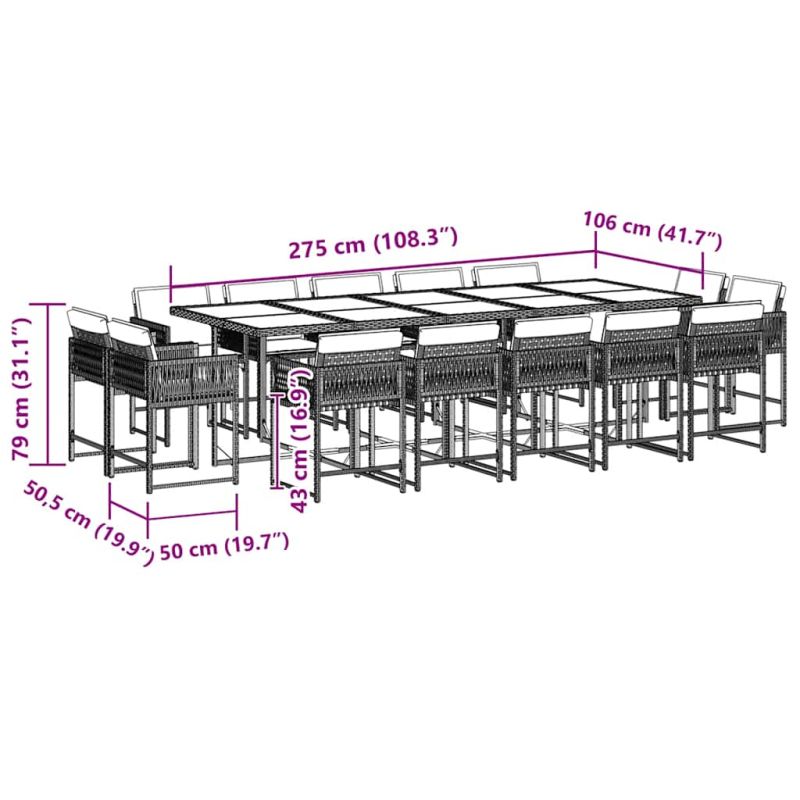 Градински комплект с възглавници 15 части полиратан черен