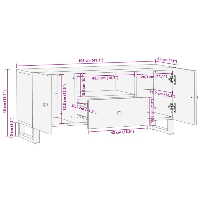 ТВ шкаф, 105x33,5x46 см, масивно регенерирано и инженерно дърво