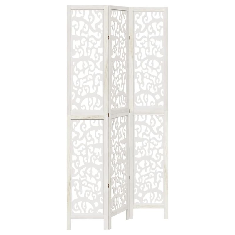 Разделител за стая, 3 панела, бял, дърво пауловния масив