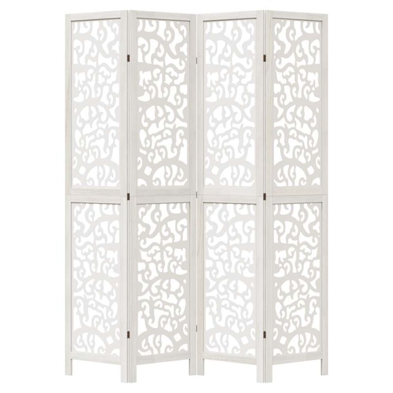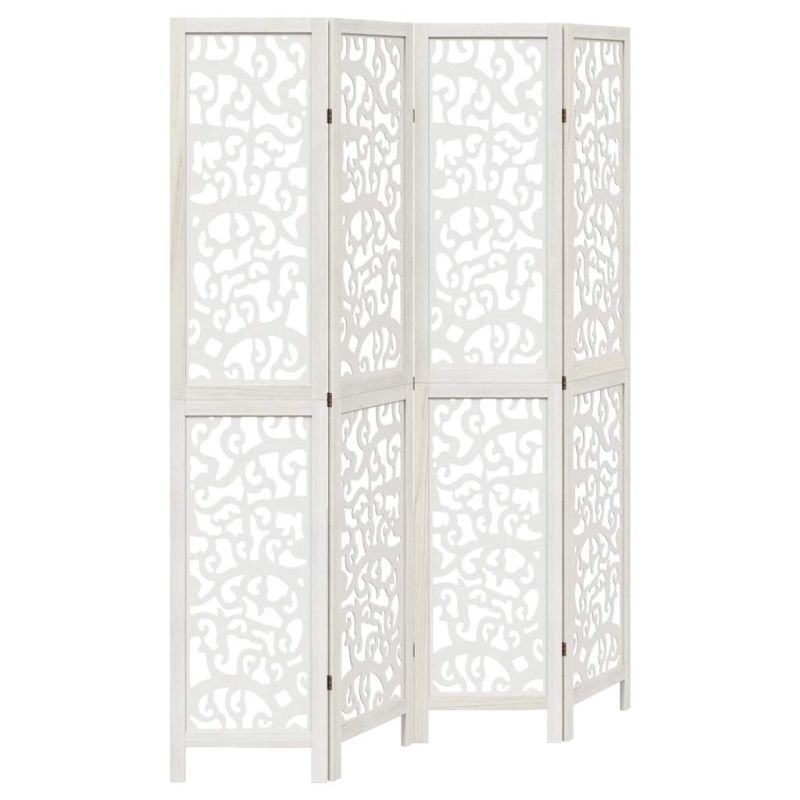 Разделител за стая, 4 панела, бял, дърво пауловния масив