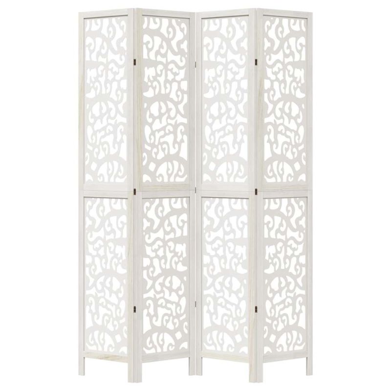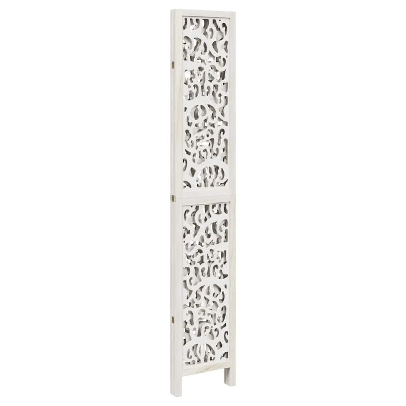 Разделител за стая, 4 панела, бял, дърво пауловния масив