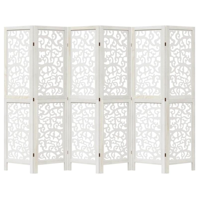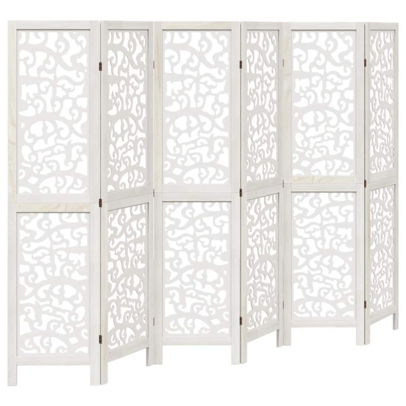 Разделител за стая, 6 панела, бял, дърво пауловния масив
