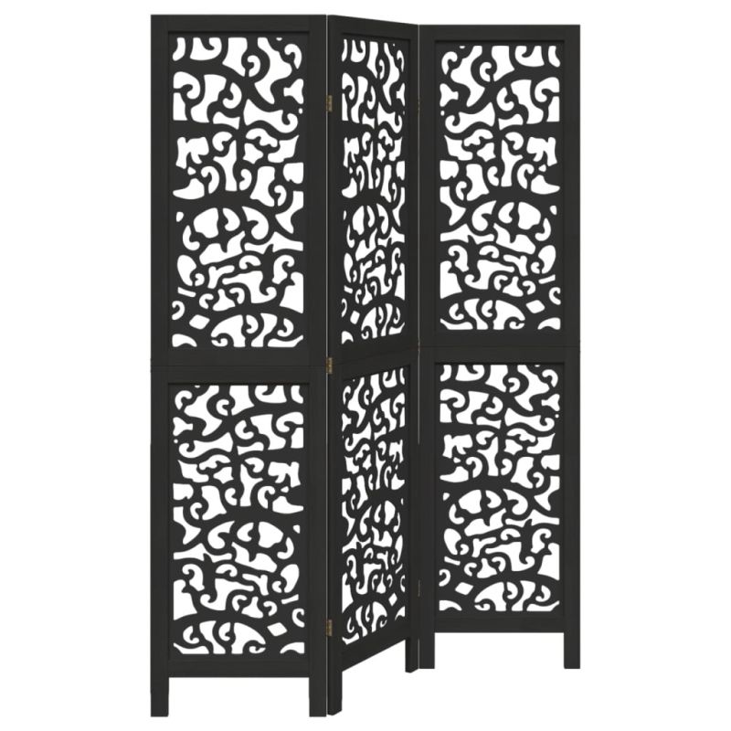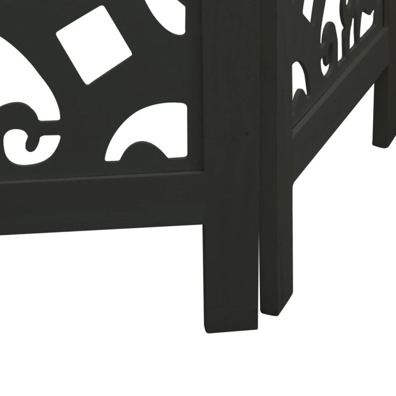 Разделител за стая, 3 панела, черен, дърво пауловния масив
