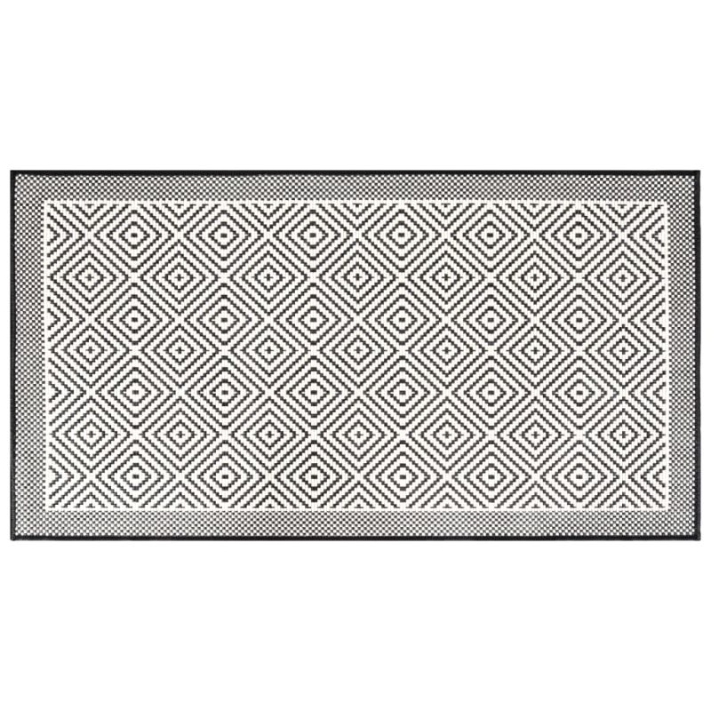 Килим за открито, сиво и бяло, 80x150 см, дизайн с две лица