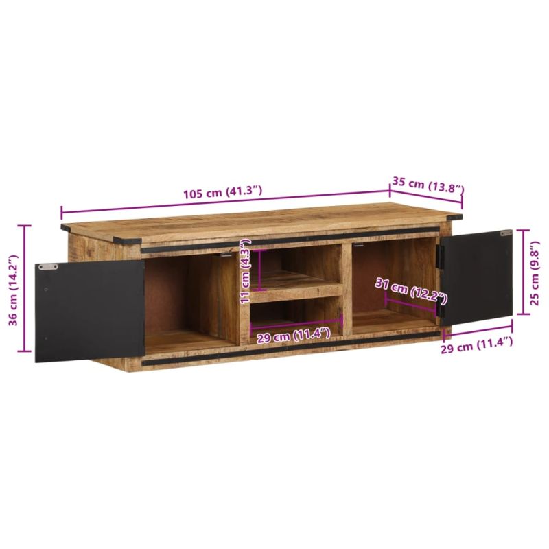 ТВ шкаф с вратички, 105x35x36 см, масивно мангово дърво