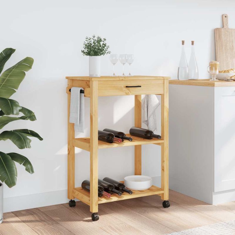 Кухненска количка "MONZA" 60x40x88,5 см борово дърво масив