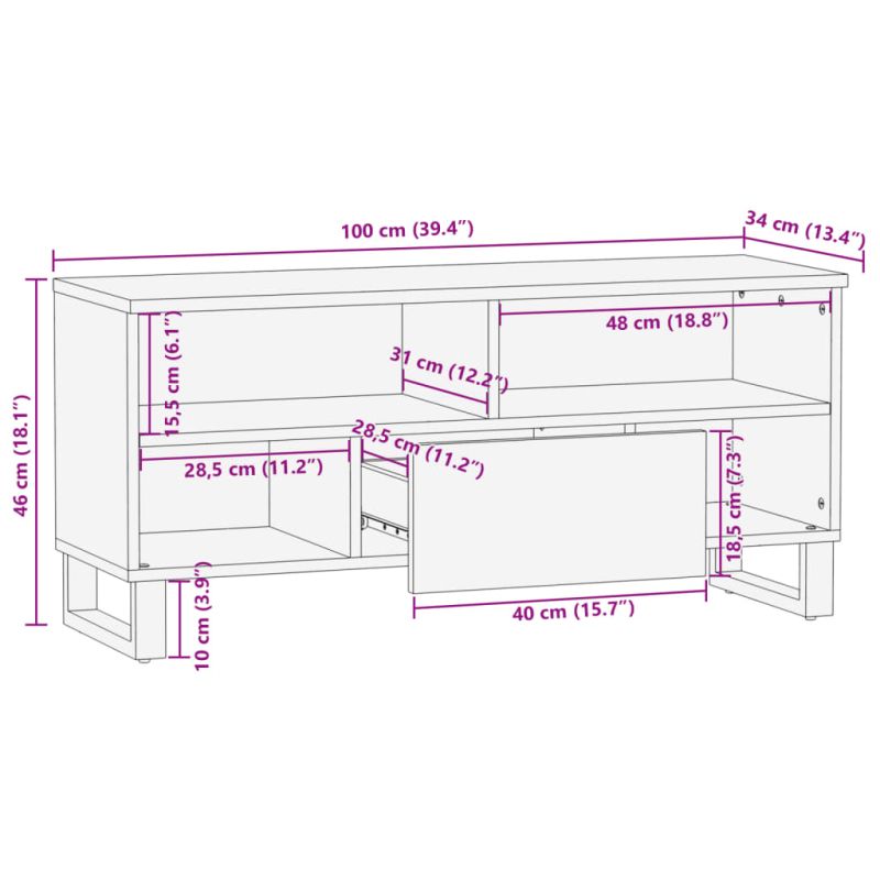 ТВ шкаф, 100x34x46 см, мангово дърво масив
