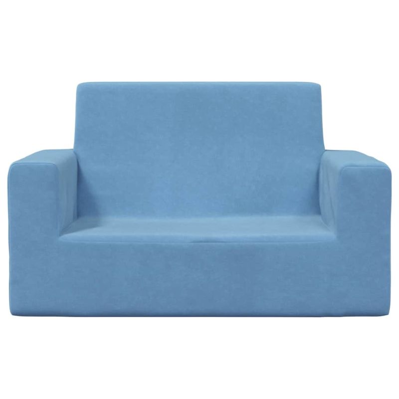 2-местен детски диван, син, мек плюш