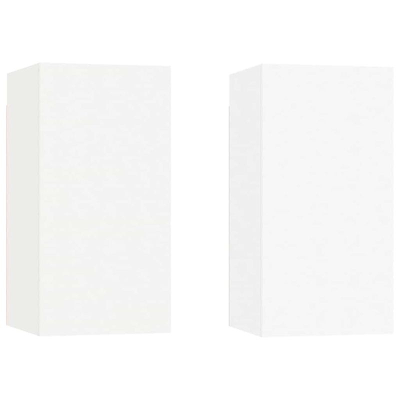 Този комплект окачени ТВ шкафове е предназначен да бъде фокусна точка на вашата всекидневна с модерния си и практичен дизайн. Тези ТВ шкафове за стенен монтаж са изработени от инженерна дървесина, който ги прави здрави и стабилни. Всеки шкаф разполага с 2 рафта, което го прави идеално място за съхранение на всички ваши книги, списания, DVD-та или други предмети. Шкафовете за стена се почистват лесно с влажна кърпа.