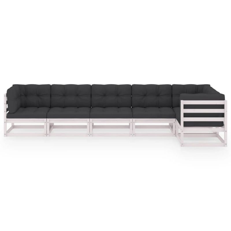 Градински лаундж комплект, 6 части, с възглавници, бор масив