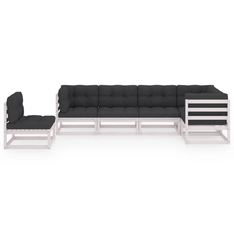 Градински лаундж комплект, 6 части, с възглавници, бор масив