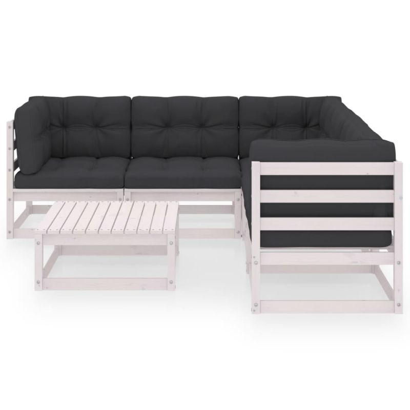 Градински лаундж комплект, 6 части, с възглавници, масив бор