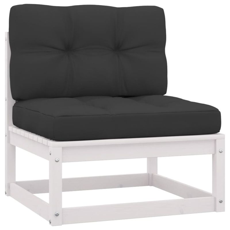 Градински лаундж комплект 9 части с възглавници бял бор масив