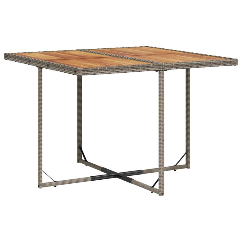 Този градински трапезен комплект е чудесен избор за вечеря на открито или просто за почивка в градината, задния двор или във вътрешния двор. Издръжлив материал: PE ратан, известен също като полиратан, е здрав синтетичен материал с малко необходима поддръжка, който прилича на естествен ратан. Той е лек, лесен за почистване и често се използва за външни мебели поради своята издръжливост и устойчивост на атмосферни влияния.Компактно съхранение: Тези столове имат падаща облегалка, която може да се сгъва, което улеснява съхранението им под масата. Когато са сгънати, те се побират под масата, оформяйки спестяваща място форма на куб.Удобна седалка: Тази мебел за открито, снабдена с плътно подплатени възглавници, предлага удобство при сядане.Калъф, който може да се сваля и може да се пере: Тези възглавници за седалки имат подвижни калъфи за лесно пране и поддръжка. Калъфките за възглавници имат калъф отзад за лесно закрепване към облегалките.Стабилен и лесен за почистване плот: Тази градинска маса има плот от акациево дърво, който е здрав, издръжлив и лесен за почистване с влажна кърпа. Добре е да се знае:За да сте сигурни, че вашите външни мебели ще останат красиви, ви препоръчваме да ги защитите с водоустойчиво покривало.