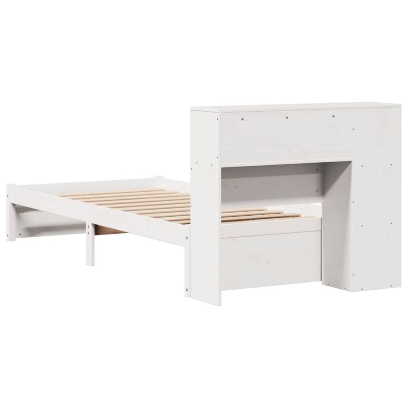 Легло с рафтове за книги, без матрак, бял, 90x190 см, бор масив