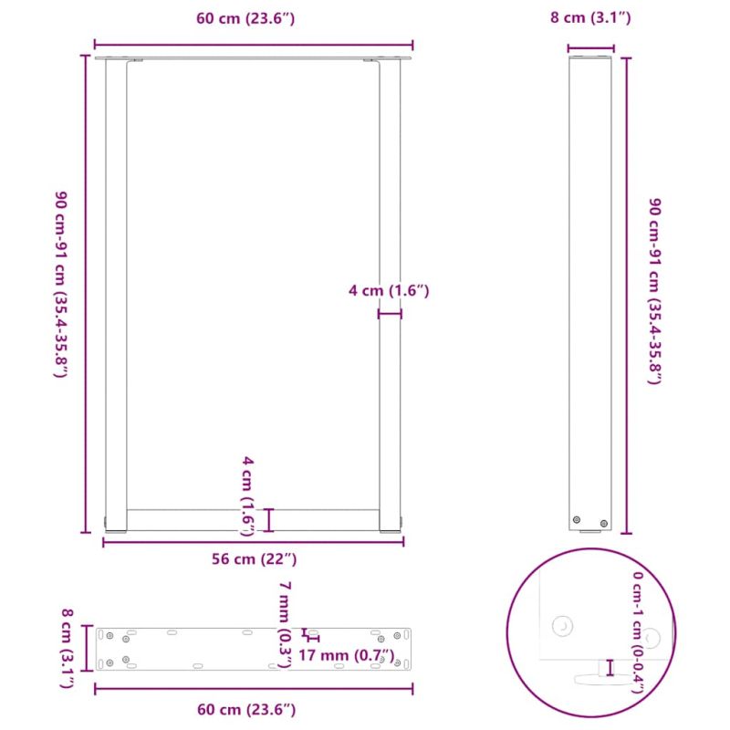 Крака за бар маса, U-образни, 2 бр., черни, 60 x (90-91) см, стомана