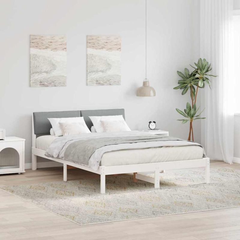 Рамка на леглото с таблото Бял и светлосив 160 x 200 cm