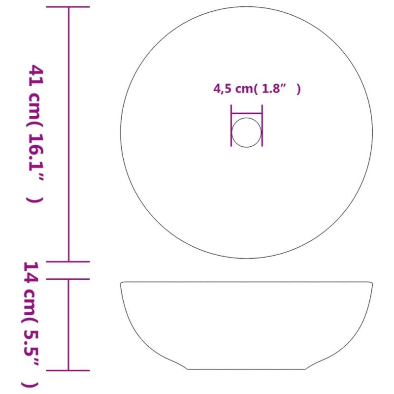 Тази мивка за плот е шикозно и непреходно допълнение към всяка баня, тоалетна или мокро помещение. Издръжлив материал: Мивката за баня, изработена от керамика, има устойчива повърхност, която издържа на удари, петна и драскотини, което гарантира дълготраен блясък.Атрактивни шарки: Тази мивка има изящни шарки, които внасят винтидж, минималистична елегантност и блясък, незабавно освежавайки вашата баня.Лесно почистване: За да запазите красотата на мивката, просто избършете повърхността ѝ с влажна кърпа. Добре е да се знае:Поради ръчната изработка продуктът може да има леко неравномерен цвят или асиметрична шарка, което прави всеки артикул уникален. Доставката е на случаен принцип, което гарантира ексклузивност и индивидуалност. Освен това размерът може да варира в рамките на 2-3 см толеранс. Децата трябва да бъдат наблюдавани, за да се гарантира, че не играят с уреда. Пазете децата далеч от зоната за сглобяване. Внимание: Прочетете внимателно инструкциите преди употреба и ги запазете за по-нататъшни справки.