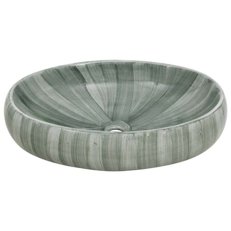 Мивка за плот, зелена, овална, 59x40x15 см, керамика