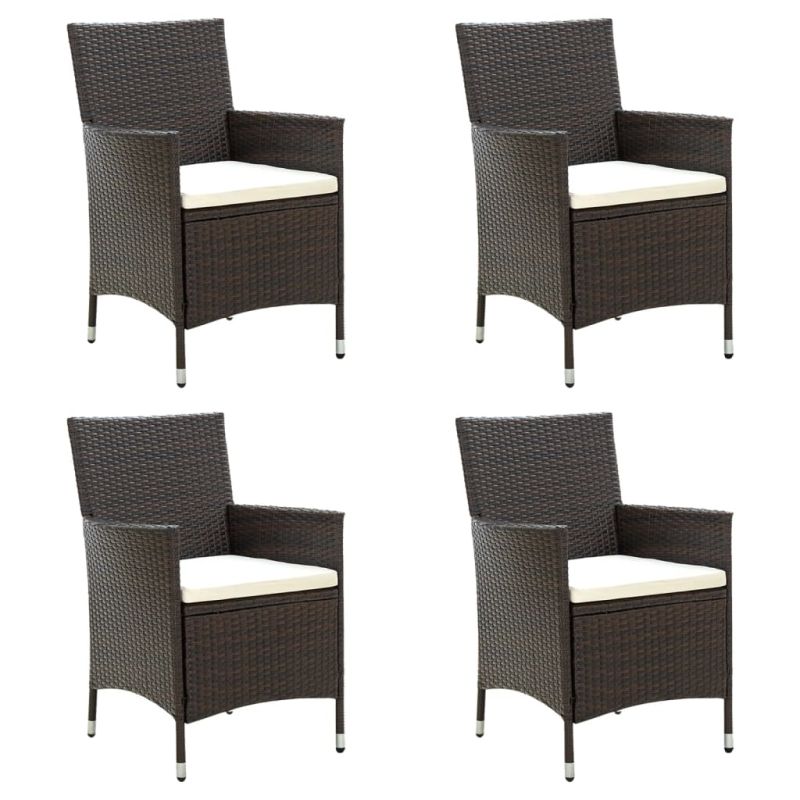Градински столове с възглавници, 4 бр, полиратан, кафяви