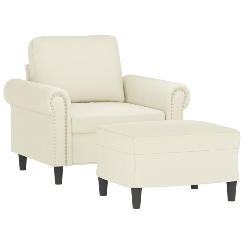 Кресло с табуретка, кремаво, 60 см, кадифе