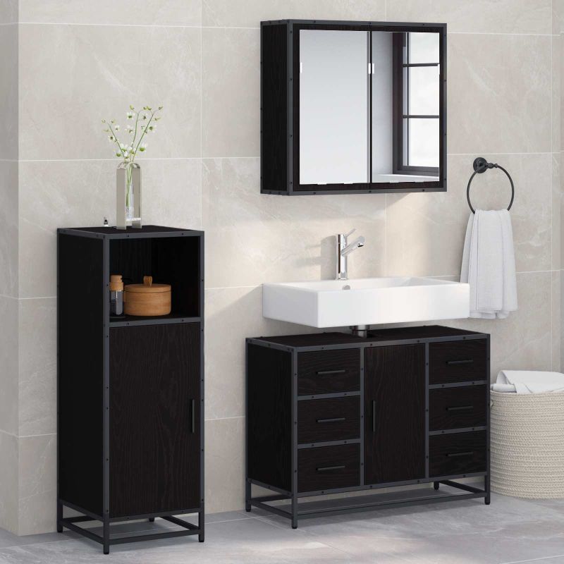 Комплект мебели за баня с рафт 3 pcs Черния дъб Инженерно дърво