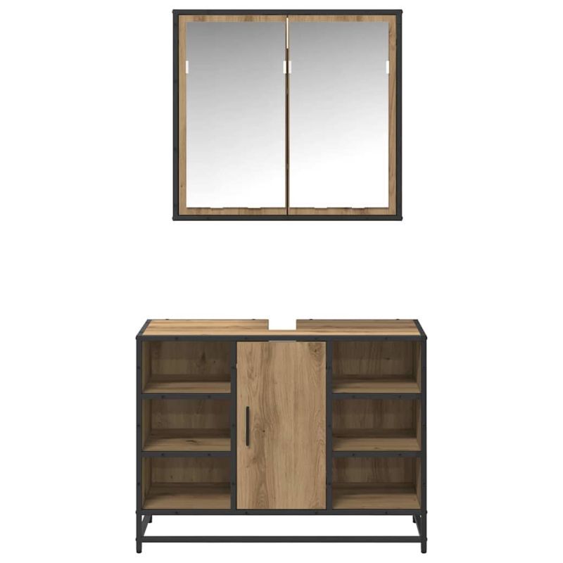 Комплект мебели за баня с рафт 2 pcs Дъб Инженерно дърво