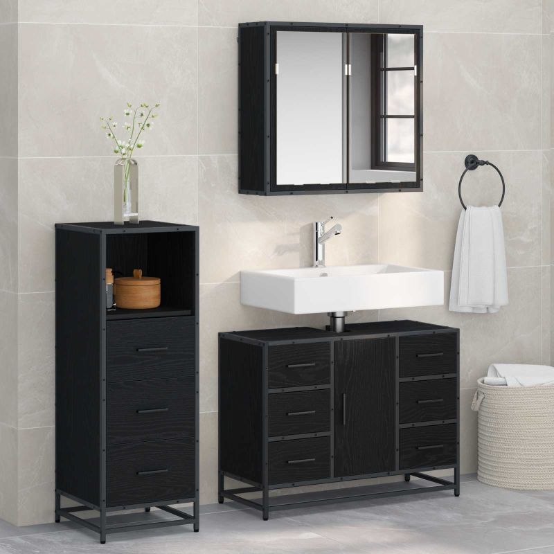 - Купете Комплект мебели за баня с рафт 3 pcs Черния дъб Инженерно дърво или друг продукт от нашата промоционална секция за да получите 3% отстъпка.