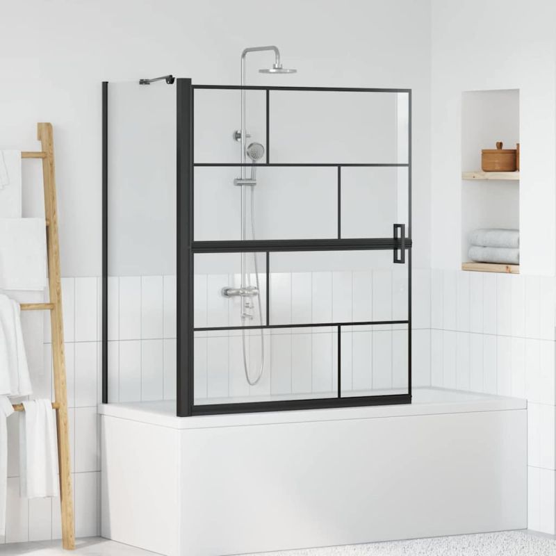 Екран за душ и вана Черен и прозрачен 116 x 68 x 128 см