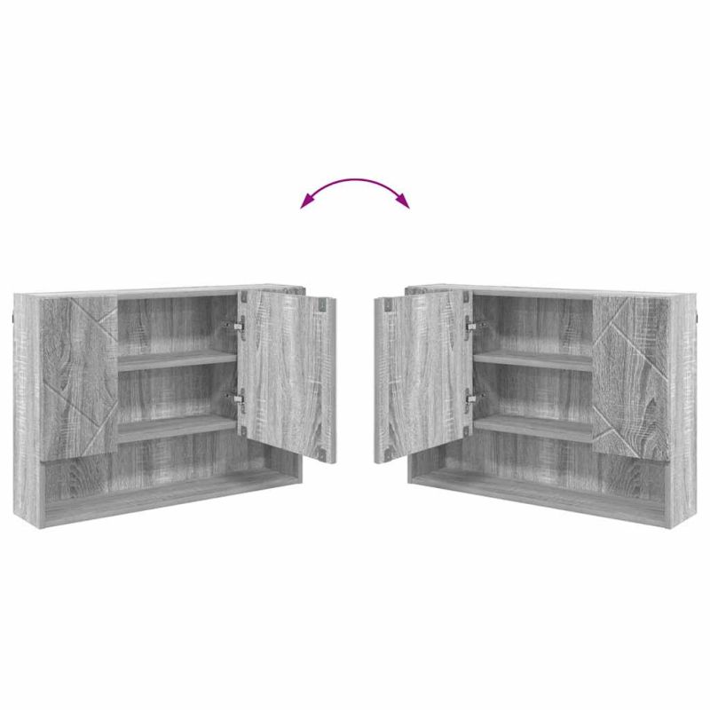 Шкаф с огледало за баня с врата Сив сонома 80 x 17 x 55 см