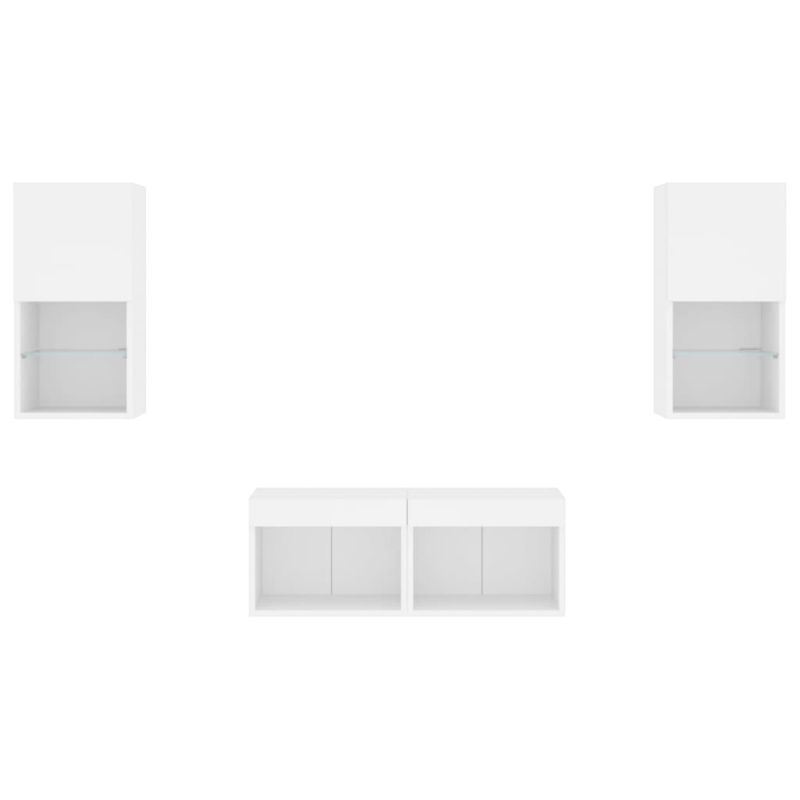 ТВ стенни шкафове, 4 части, с LED светлини, бели