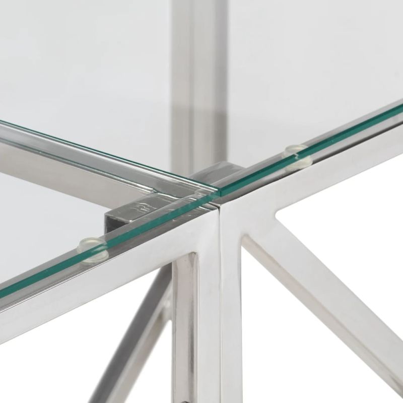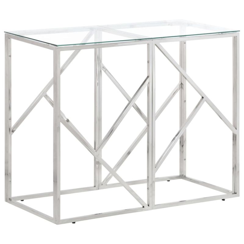 Конзолна маса, сребриста, неръждаема стомана и закалено стъкло