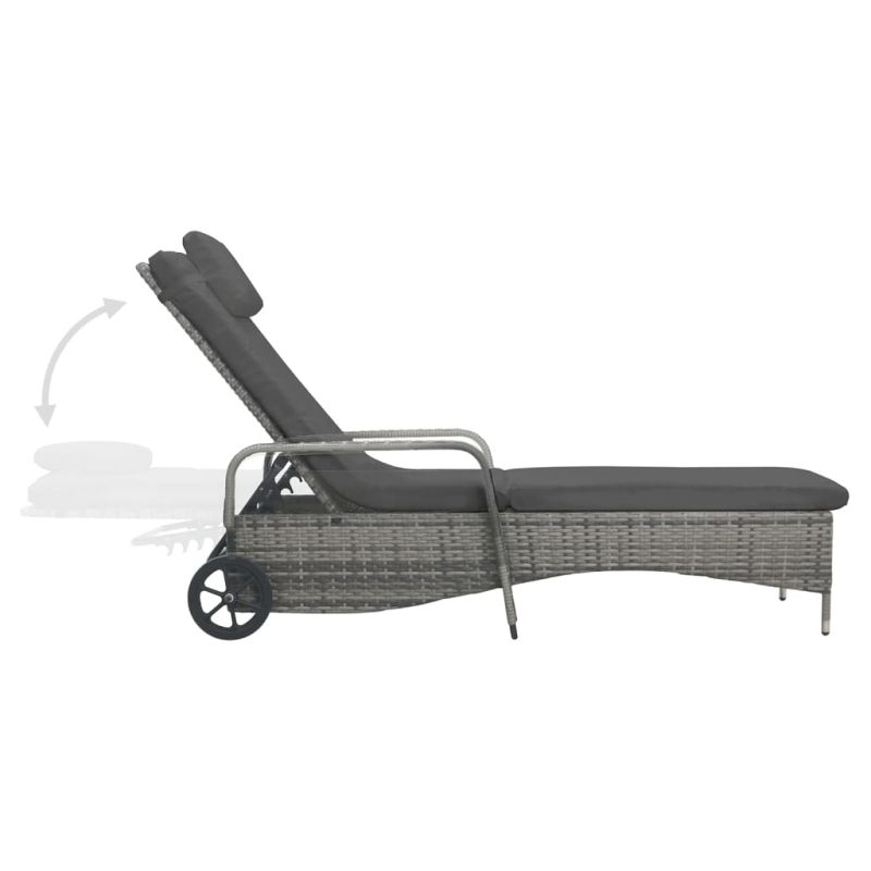 Нашият шезлонг от ратан с регулируема облегалка и 2 колелца е перфектен избор за пълноценна почивка и наслаждаване на времето навън – в градината, на вътрешния двор или край басейна. Градинският шезлонг има здрава стоманена рамка, която го прави изключително издръжлив. Благодарение на устойчивия на атмосферни влияния и влага PE ратан, шезлонгът е здрав, не изисква много поддръжка и е идеален за целогодишна употреба на открито. 2-те колелца улесняват преместването на шезлонга. Шезлонгът е с облегалка, която може да се регулира на 4 позиции. Меките, подвижни възглавнички, изработени от водоотблъскващ полиестер, са много удобни. Калъфите им, снабдени с ципове, могат да се свалят и перат. Този продукт се сглобява лесно. Забележка: Препоръчваме да покривате шезлонга по време на дъжд, сняг или слана.