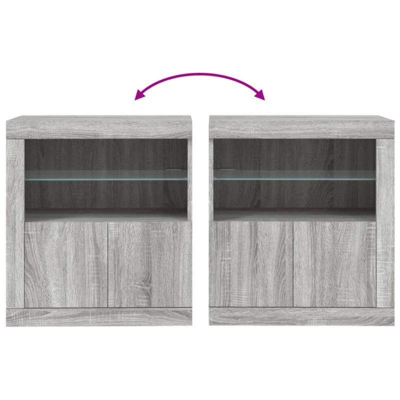 Сайдборд с LED светлини, сив сонома, 60,5x37x67 см
