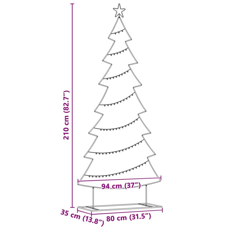 Метално коледно дърво с поставка Черно 210 cm Стомана
