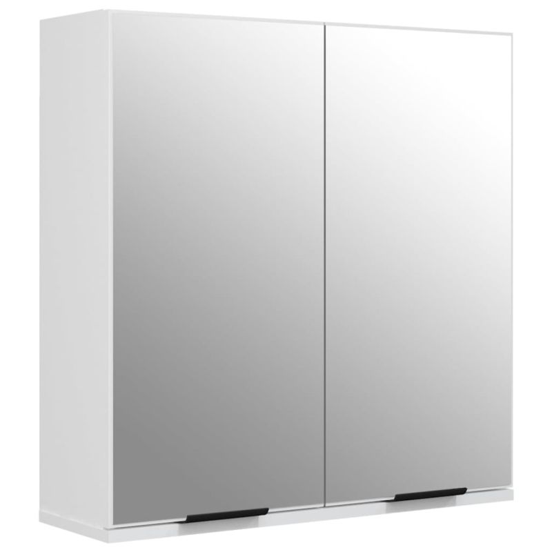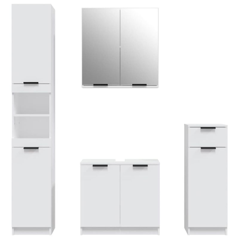 Комплект мебели за баня от 4 части, бял, инженерно дърво
