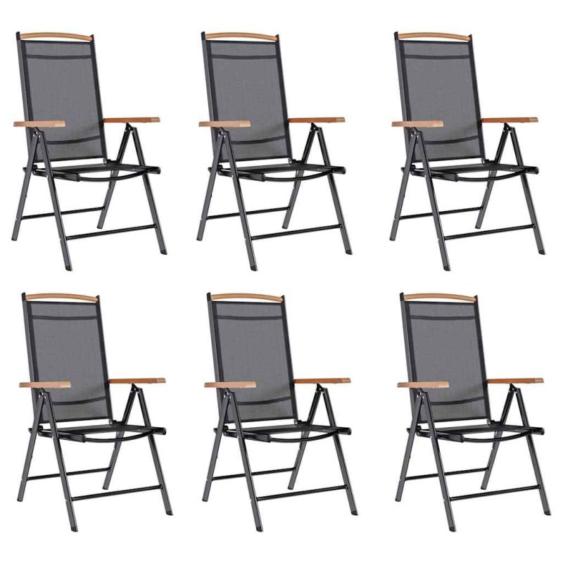 Сгъваеми градински столове, 6 бр, Textilene, черни