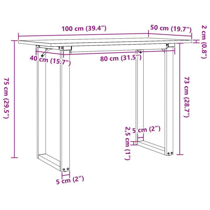 Трапезна маса О-образна рамка 100x50x75 см бор масив и стомана