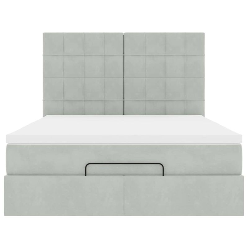 Използвайте това легло с матраци, за да се насладите на спокоен нощен сън! То ви предлага както решение за съхранение, така и комфортен сън. Мек и удобен материал: Кадифената материя се отличава с мека и гладка повърхност, която създава приятно усещане върху кожата, като ви носи топлина и максимален комфорт.Матрак с джоб пружини: Този матрак с джоб пружини има индивидуални пружини с джобчета, които работят независимо, за да осигурят персонализирана опора, като реагират само на натиска във всяка област. Този дизайн предотвратява "свличането" към средата на матрака и намалява прехвърлянето на движение в сравнение с традиционните матраци с отворени намотки. Всяка покет пружина поддържа тялото индивидуално.Достатъчно място за съхранение под леглото: Благодарение на хидравличния повдигащ механизъм рамката на леглото предлага обширно пространство за съхранение под леглото, което увеличава пространството, без да заема допълнителна площ. Само с едно издърпване на дръжката основата на ламелите се повдига плавно, което ви позволява да прибирате вещите си бързо и без усилие.Удобен горен матрак: Този топ матрак подобрява опората и комфорта със своята мека, дишаща повърхност, като същевременно удължава живота на вашия матрак. Подвижният му калъф позволява лесно изпиране, което прави поддръжката лесна. Добре е да се знае:От хигиенни съображения матракът не може да бъде върнат, ако опаковката е отстранена или отворена.