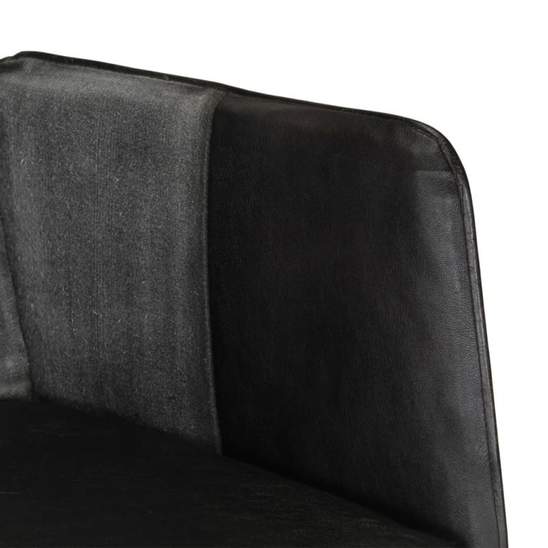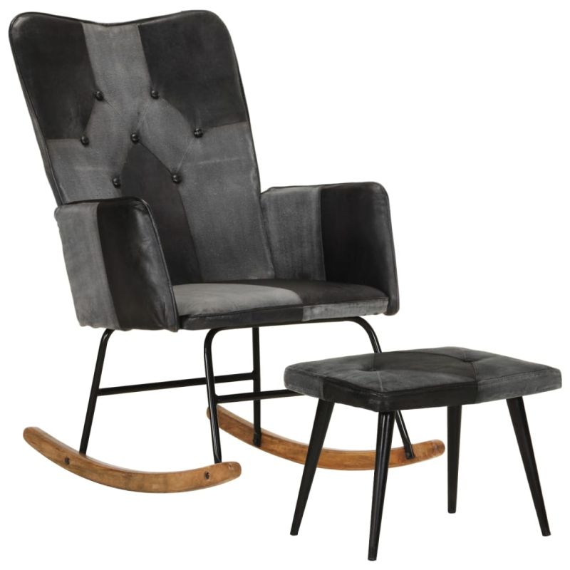 Люлеещ се стол с табуретка, черен, естествена кожа и платно