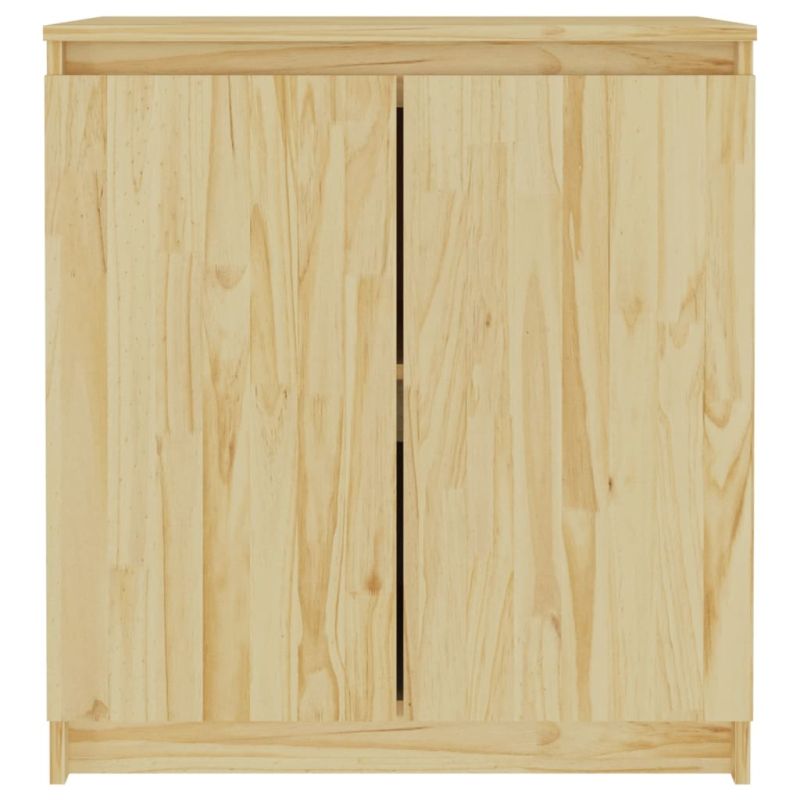 Дръжте важните си предмети добре подредени с този дървен страничен шкаф! Борово дърво масив: Бюфетът е изработен от масивно борово дърво. Масивната борова дървесина е красив естествен материал. Боровата дървесина е с продълговати шарки, а чеповете придават на материала характерния му рустик вид.Достатъчно място за съхранение: Снабден с 2 отделения, шкафът предоставя достатъчно място за съхранение, където да държите различни ваши вещи добре организирани и леснодостъпни.Декоративна функция: Плотът на този бюфет е чудесен за поставяне на вашите декоративни предмети, фотоалбуми или малки растения. Внимание:За предотвратяване на преобръщане този продукт трябва да се използва с предоставения анкер за стена.